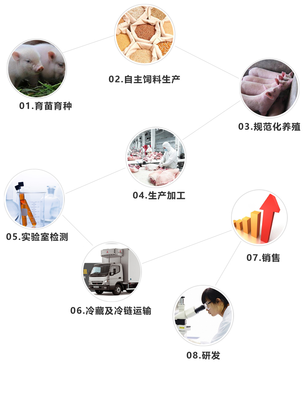 公司旗下?lián)碛小巴ㄍ~”、“通威蝦”、“魚鮮達”、“貓無刺”、“通威美鮰魚”、“蛙常在”、“春源冷鮮肉”、“新太豐鮮禽”、“通威生活”等多個知名品牌,為確保每一款產品的安全,通威食品多年來全力整合行業(yè)資源,在產業(yè)鏈上實現(xiàn)了從養(yǎng)殖、加工到銷售的全程品質監(jiān)控。通威食品打造的中國第一條品牌魚一“通威魚”,已經實現(xiàn)了全產業(yè)鏈監(jiān)控。